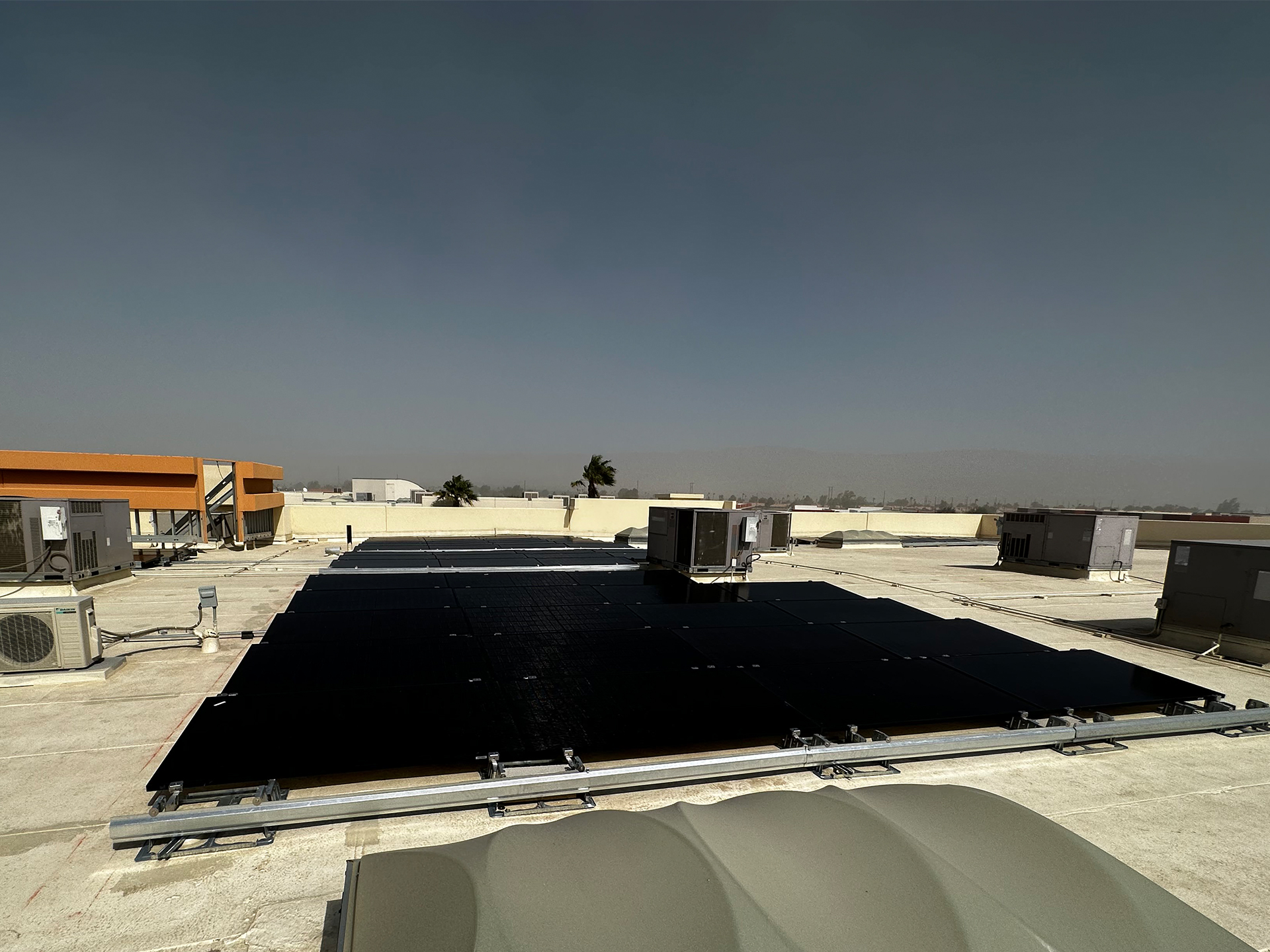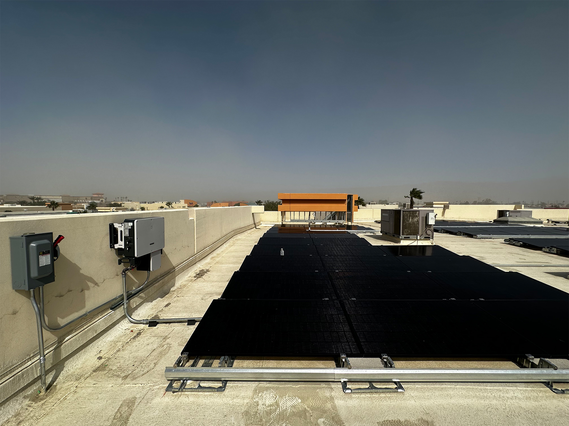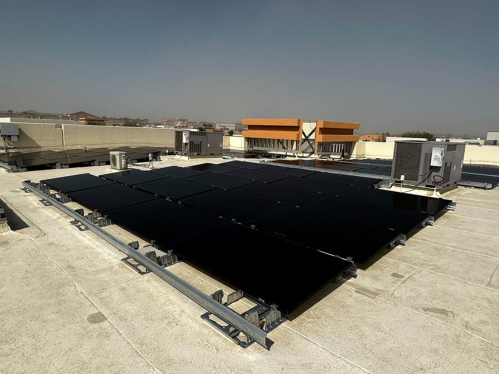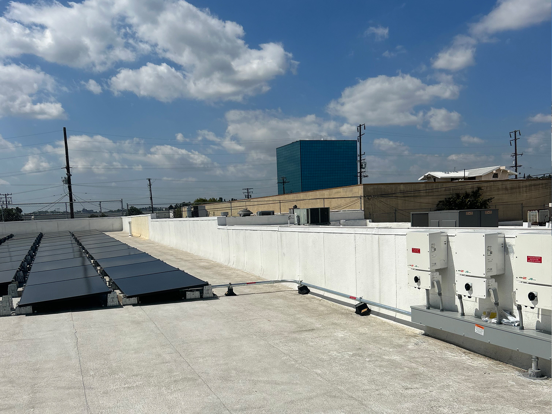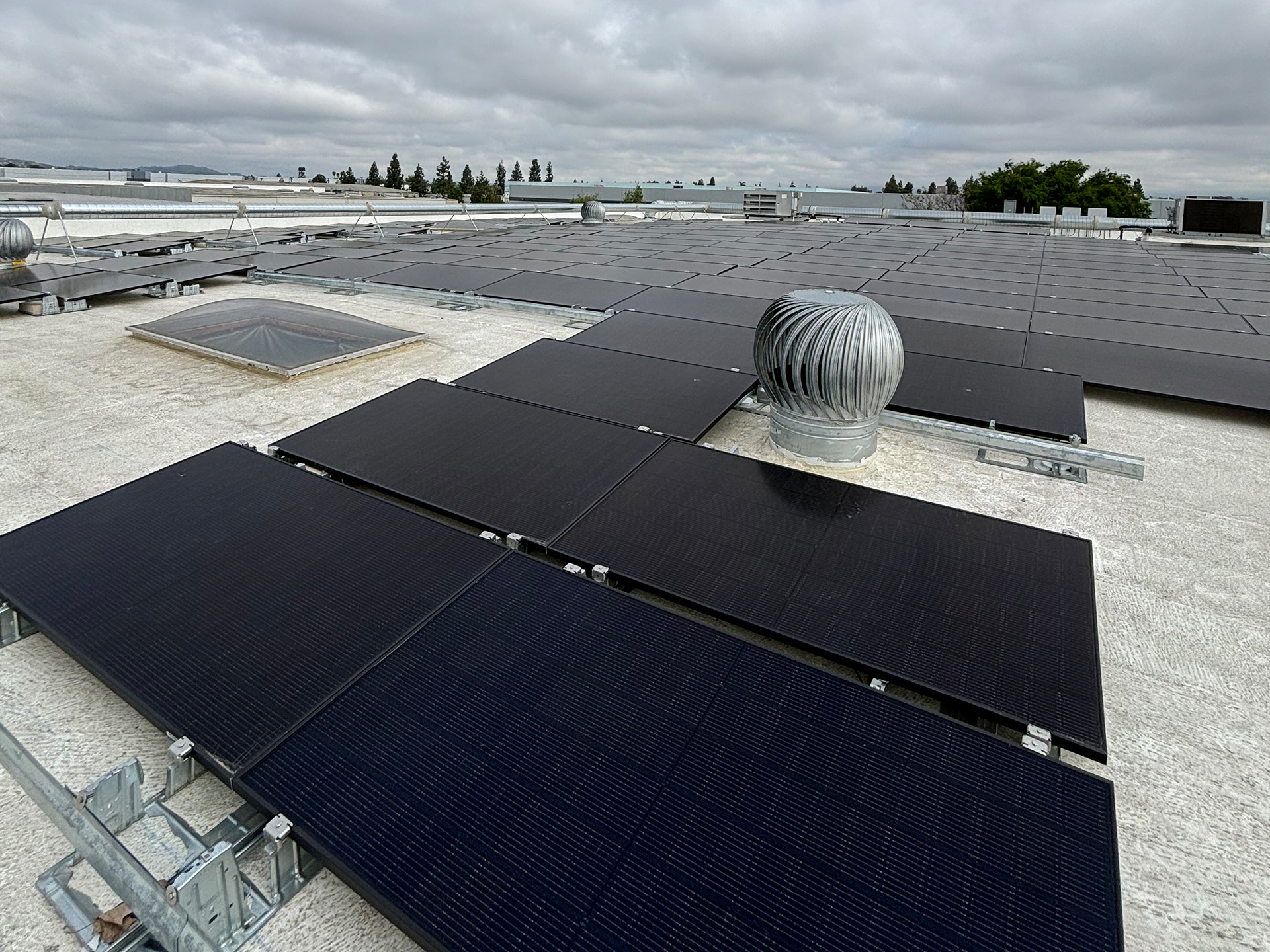 CS&E installed a 41.2 kW commercial solar energy system on a flat membrane roof using a ballast-mounted racking solution designed to avoid roof penetrations while maximizing structural safety. The system features 103 Q-Peak DUO 400-watt solar panels integrated through a DC system configuration to deliver reliable, high-efficiency energy production for daily business operations. This solution was designed to help the facility stabilize rising utility costs while maintaining full roof integrity, providing a clean and durable commercial solar installation that supports long-term energy savings and operational efficiency.